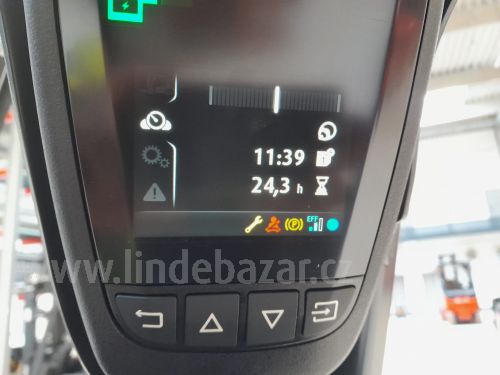 Další výbava:Pracovní osvětlení 5,6, BlueSpot 3,7, Connect: RFID přístup ke stroji.Linde Safety Pilot LSP.Monitoring zapnutí bezpečnostního pásu.